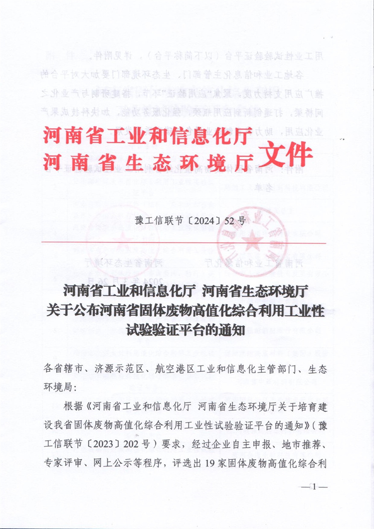 恭喜河南鄭礦機器有限公司被河南省工業(yè)和信息化廳、河南省生態(tài)環(huán)境廳評定為河南省固體廢物高值化綜合利用工業(yè)性試驗驗證平臺的。
