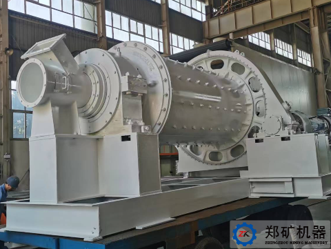 喂料設(shè)備將原料送入進(jìn)料裝置的溜子內(nèi),<150℃原料經(jīng)過(guò)進(jìn)料螺旋筒進(jìn)入筒體倉(cāng)內(nèi),在倉(cāng)內(nèi)裝有一定數(shù)量的研磨體,由于筒體回轉(zhuǎn),襯板將研磨體帶到一定高度,再利用其降落時(shí)的沖擊能和摩擦能將原料進(jìn)行破碎和研磨,在原料被破碎和研磨的同時(shí),由專(zhuān)設(shè)的引風(fēng)機(jī)經(jīng)過(guò)磨機(jī)的出料裝置將已研磨好的細(xì)粉吸出磨機(jī)進(jìn)入下道工序。